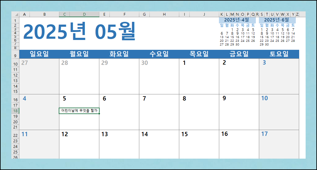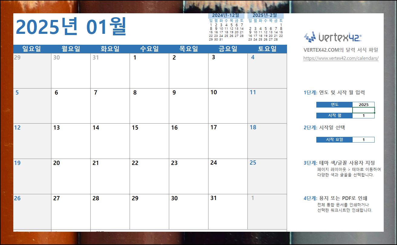2025년 달력 다운로드 방법, 엑셀로 5분 만에 완성하기
