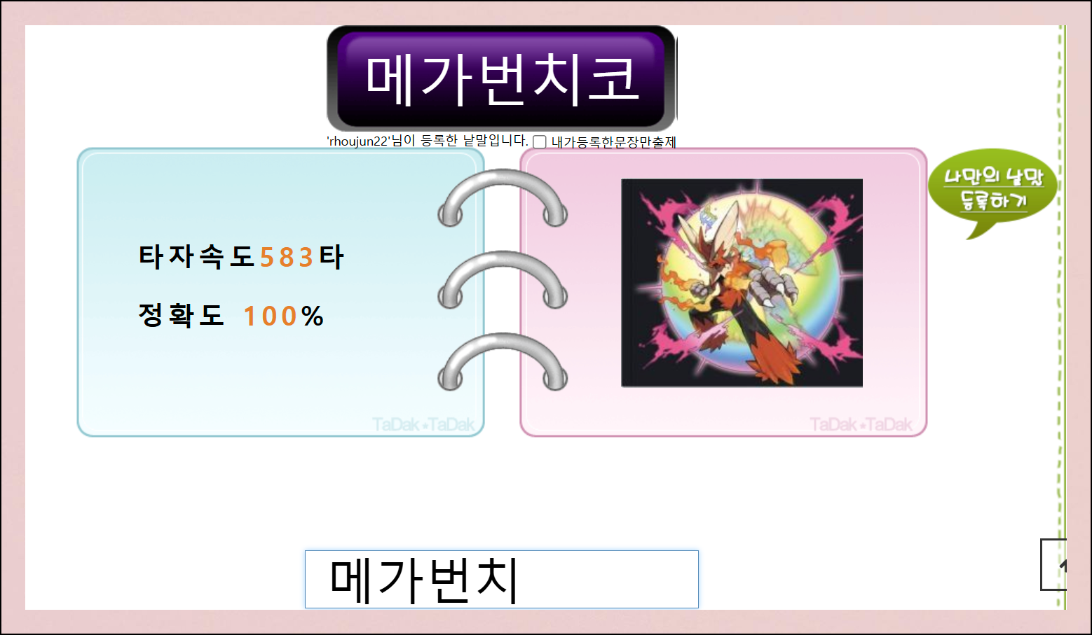타닥타닥은 프로그램을 다운로드 받을 필요 없이 웹브라우저에서 바로 이용할 수 있는 타자연습 사이트입니다.
