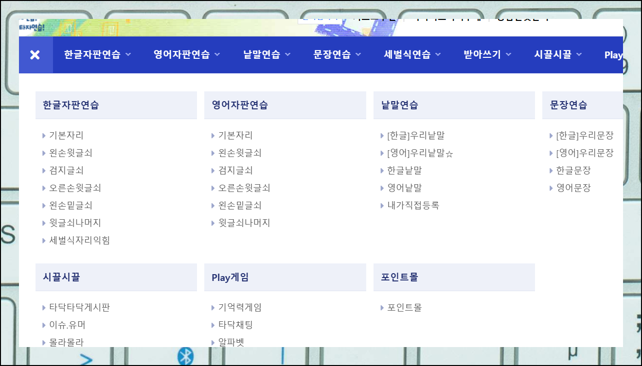 별도의 계정 생성이나 로그인 과정을 거치지 않고도 타자연습을 시작할 수 있어요. 화면 좌측 상단에 위치한 전체 메뉴 버튼을 누르면 다양한 학습 단계가 나타납니다. 여기에서 본인의 실력에 맞는 연습 단계를 선택하면 돼요.