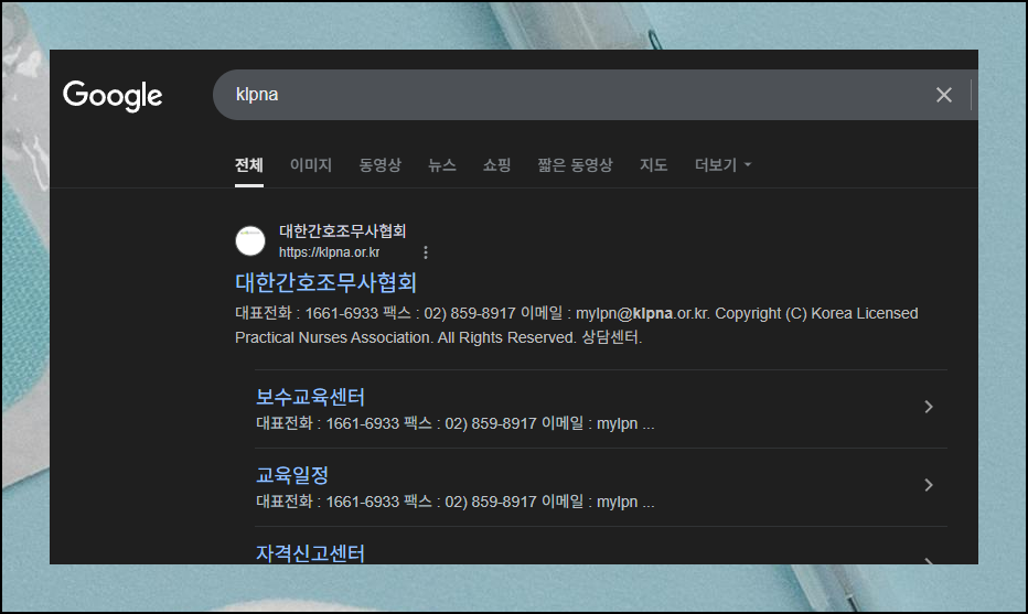 대한간호조무사협회 사이트에 접속하는 가장 간단한 방법을 알려드릴게요. 포털 검색창에 'KLPNA'만 입력하면 바로 찾을 수 있어요. 긴 주소를 외울 필요도 없고, 즐겨찾기를 할 필요도 없습니다. 안전하게 공식 홈페이지에 접속해 주세요.