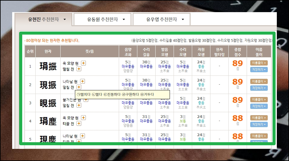좋은 이름모음 작명 사이트 활용법, 맞춤으로 받아보기