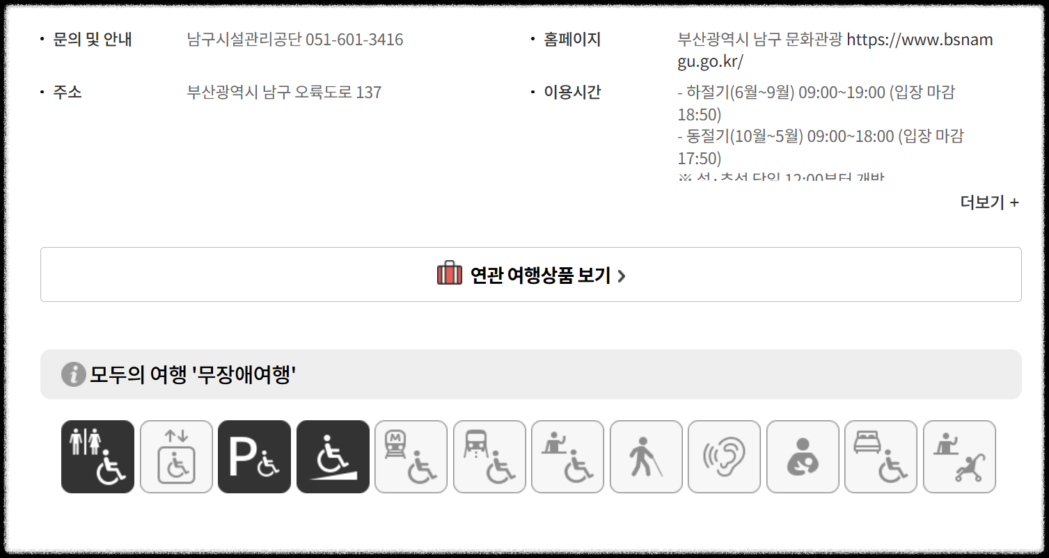 문의 및 안내처, 주소, 휴일, 이용 시간, 주차 여부, 관련 홈페이지, 편의시설 등 실제로 알면 도움 되는 유용한 정보도 자세히 제공하오니 이런 부분도 꼼꼼히 참고해 주세요.