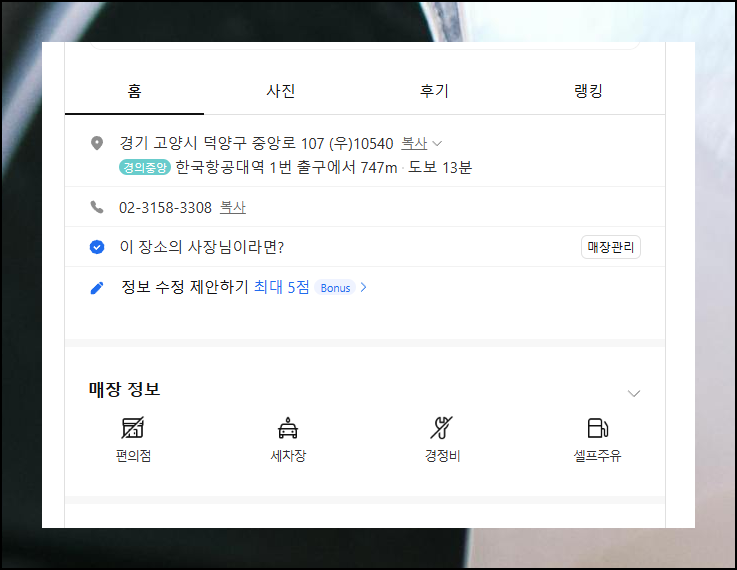 상세보기 버튼을 누르면 더 많은 정보를 얻을 수 있어요. 정확한 주소, 브랜드명, 연락처, 부대시설 정보까지 모두 확인 가능합니다.