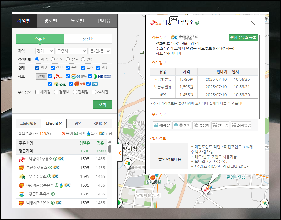 (3) 지도에서 주유소 정보 확인