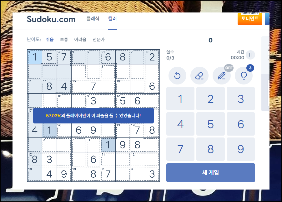 스도쿠 무료 게임, 메모 기능부터 킬러 모드까지 재미있게 즐기기
