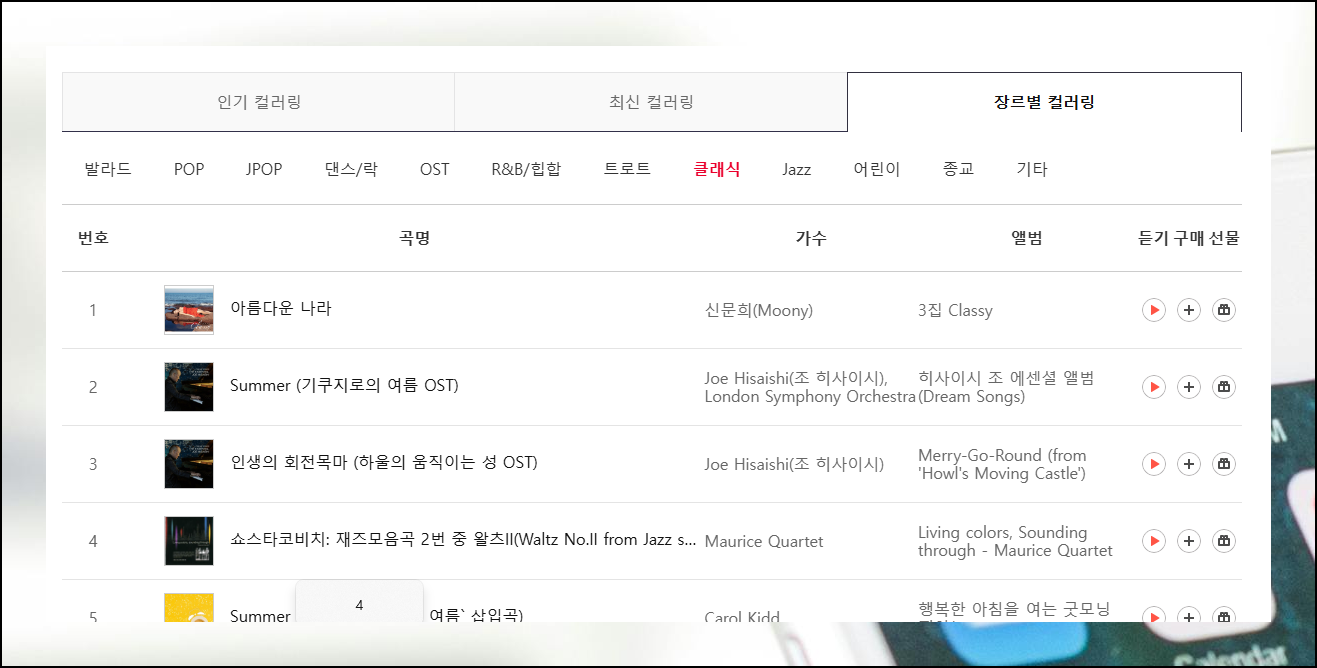 개인의 음악 취향은 정말 다양하죠. 발라드부터 POP, JPOP, 댄스, 락까지 장르별로 분류된 카테고리를 활용하면 좋아하는 스타일의 음악을 쉽게 발견할 수 있습니다. 각 장르마다 인기 순위가 따로 정리되어 있어서 선택하기 편해요.