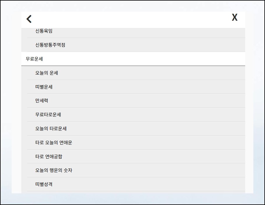 사이트에 접속하면 우측 상단에 메뉴 버튼이 있습니다. 여기에서 무료운세 영역을 찾아주세요. 화면을 내리다보면 우리가 이용할 타로점 서비스가 나타납니다. 그 밖에 일일운세와 별자리 상담 등 흥미진진한 콘텐츠들도 있으니 참고해주세요. 그럼 "무료 타로 운세" 메뉴를 선택하여 이 방법을 알려드리겠습니다.
