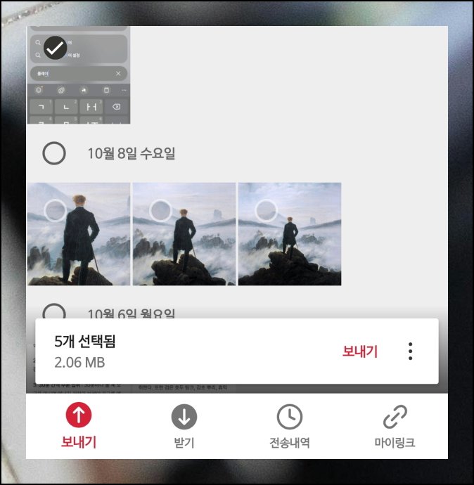 이미지뿐만 아니라 다양한 종류의 데이터를 보낼 수 있어요. 동영상 클립도 가능하고요. 설치된 앱이나 저장된 연락처도 옮길 수 있습니다. 음악도 지원되니까 용도에 맞게 활용하면 돼요.