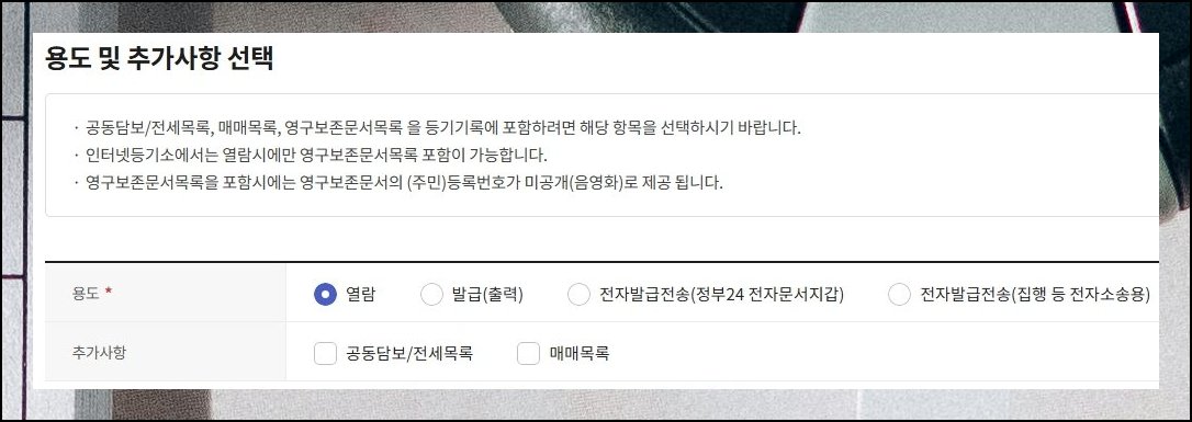 지정된 소재지에 대해 어떤 범위까지 살펴볼지 목적에 따라 택해야 해요. 담보 설정 내역이나 전세 권리 현황, 소유권 이전 기록은 결제 후에만 공개됩니다. 무료열람 쪽에서는 기초 사항만 제공되는 형태예요.