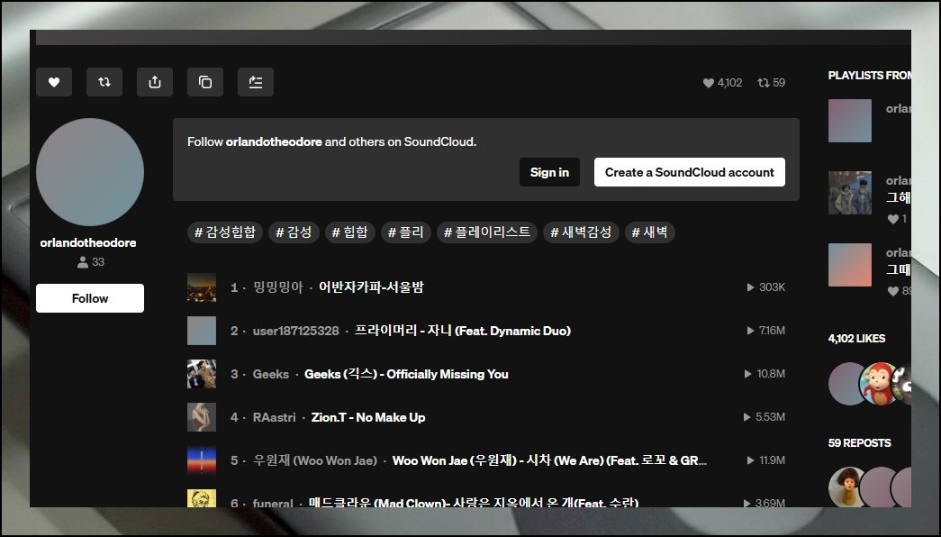 꼭 알려드리고 싶은 곳이 하나 있는데요. "사운드클라우드"라는 서비스입니다. 전 세계적으로 높은 인지도를 자랑하고 있죠. 핵심 강점은 노래무료 재생을 할 수 있다는 점이에요. 등록된 곡의 양이 어마어마해서 선택지가 풍부합니다. 국내곡부터 외국 아티스트의 작품까지 골고루 갖춰져 있어요. 어떤 장르든 제약 없이 감상이 가능한 열린 공간이죠.