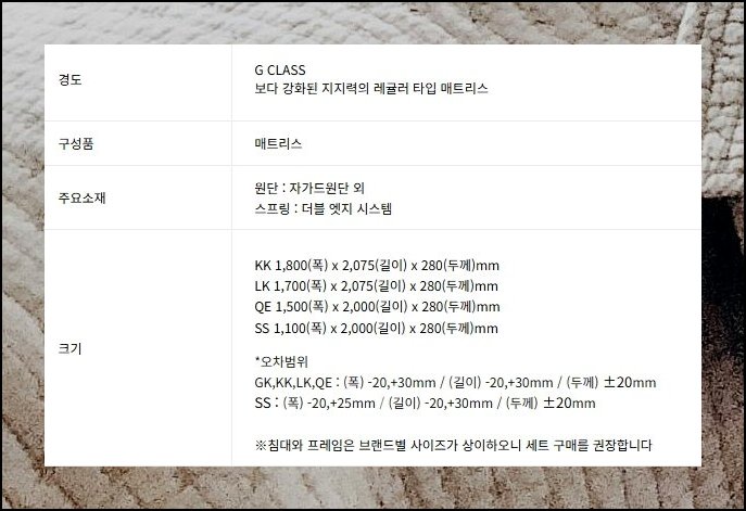매트리스를 장만할 때 간과하기 쉬운 부분이 프레임 치수와의 궁합이에요. 시몬스 킹 제품의 세로 길이는 2075mm입니다. 이케아처럼 해외 기반 프레임은 1800mm를 기본으로 삼는 경우가 잦아 크기가 어긋날 수 있어요. 프레임을 따로 마련할 계획이라면 양쪽 치수를 반드시 사전에 맞춰봐야 합니다. 사소한 수치 차이가 수면 중 불안정한 느낌으로 이어질 수 있기 때문이에요.