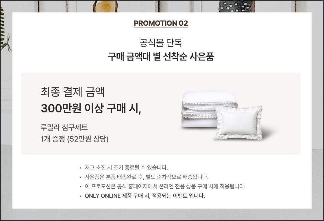 각 침대 브랜드는 계절에 맞춰 신규 이벤트를 꾸준히 기획합니다. 한정된 기간에만 운영되는 행사가 대다수이기 때문에 시점을 잘 포착해야 해요. 공식 웹사이트나 소셜 미디어를 등록해두면 최신 행사 안내를 곧바로 받아볼 수 있습니다. 침구류는 오래 쓰는 고가 품목이니 충분히 비교한 뒤 결정하는 편이 이롭습니다.